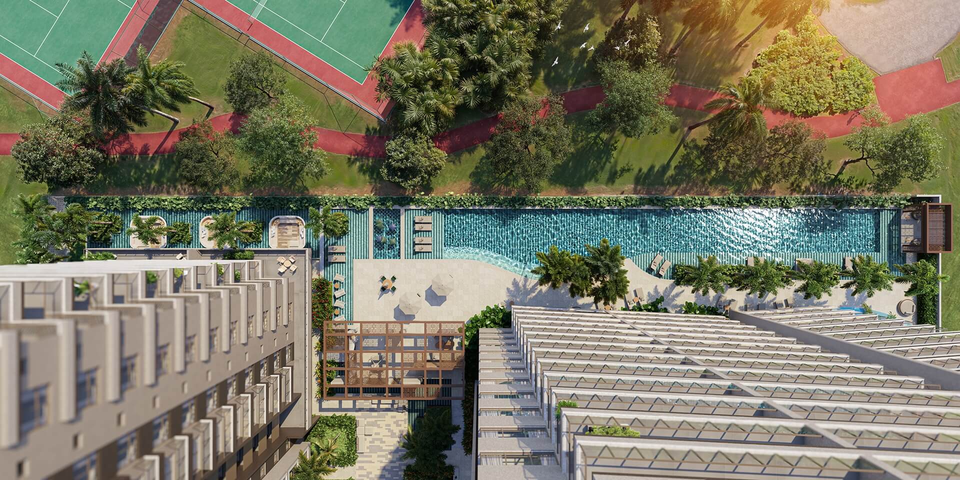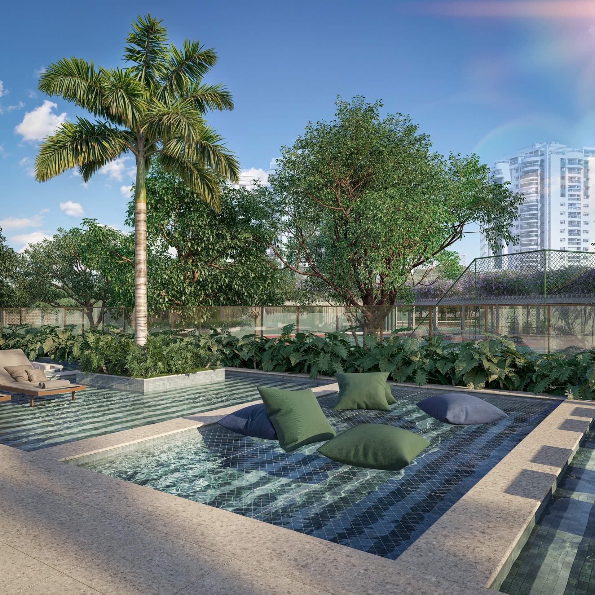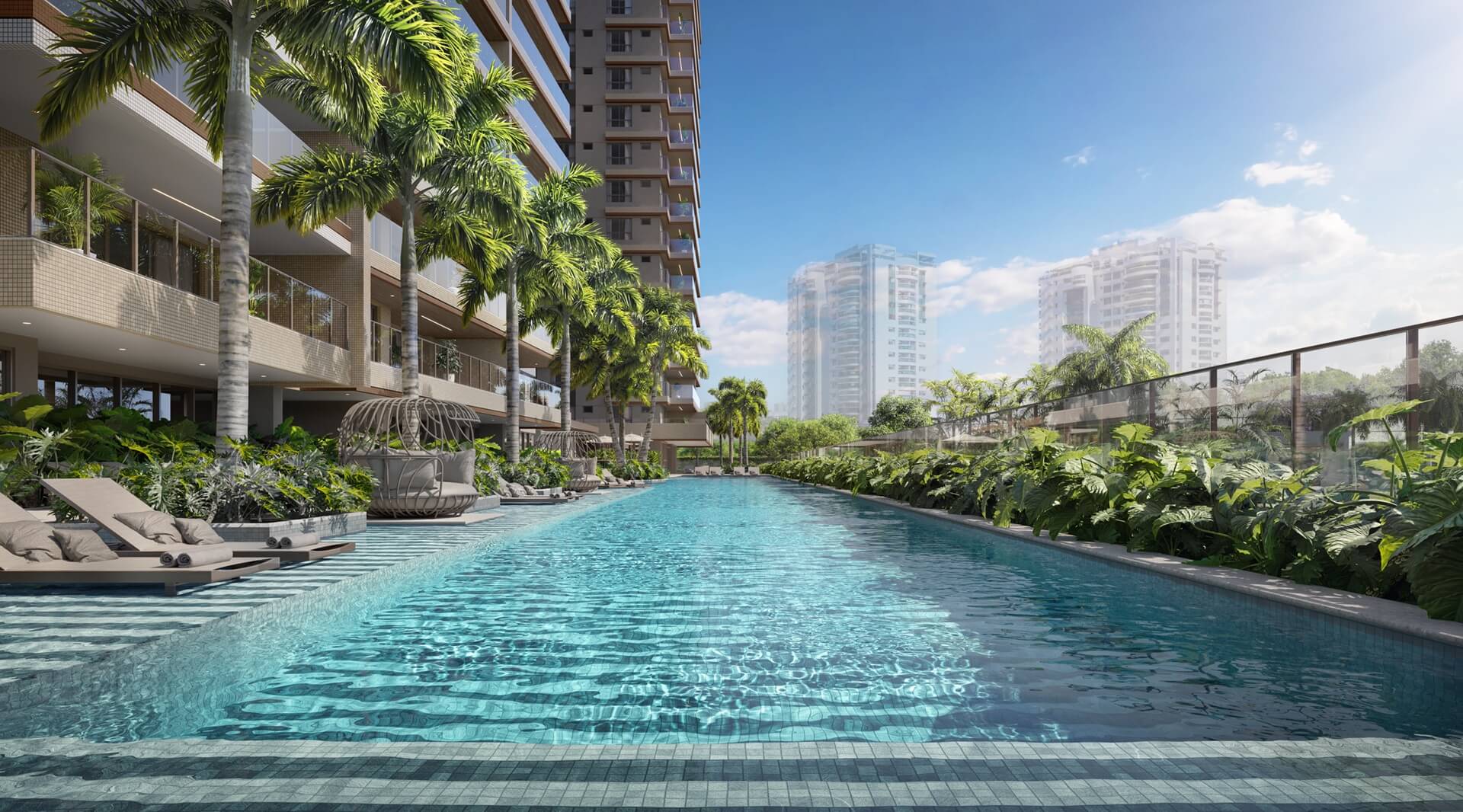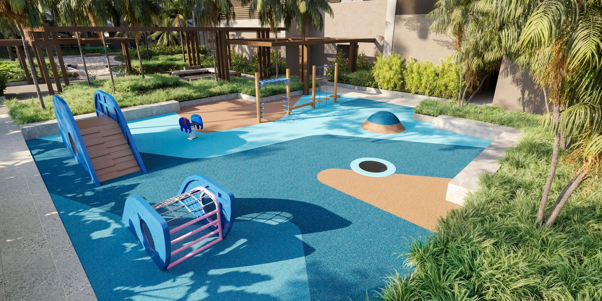 Piscina de 50 metros, além de área exclusiva com aquaplay